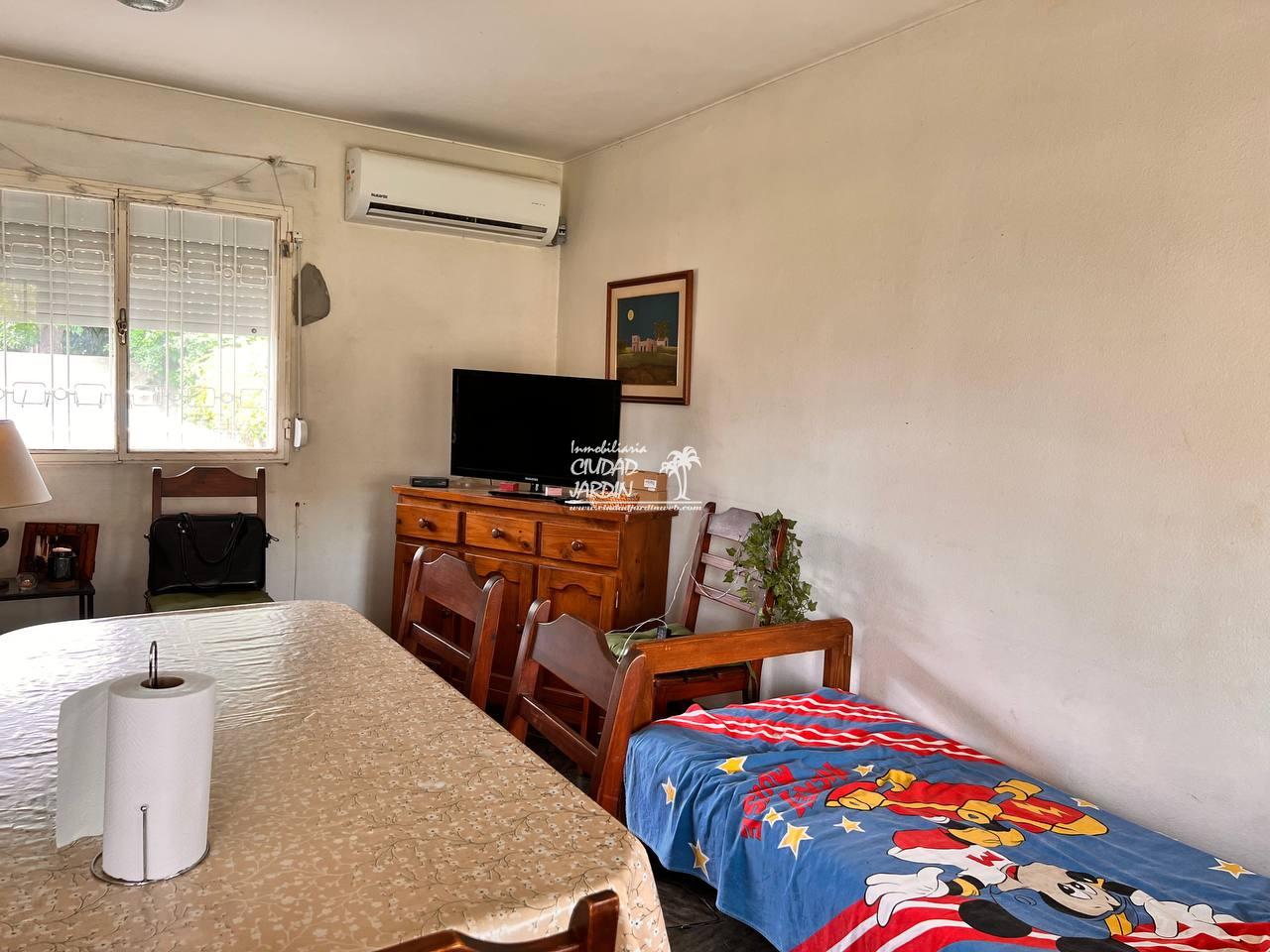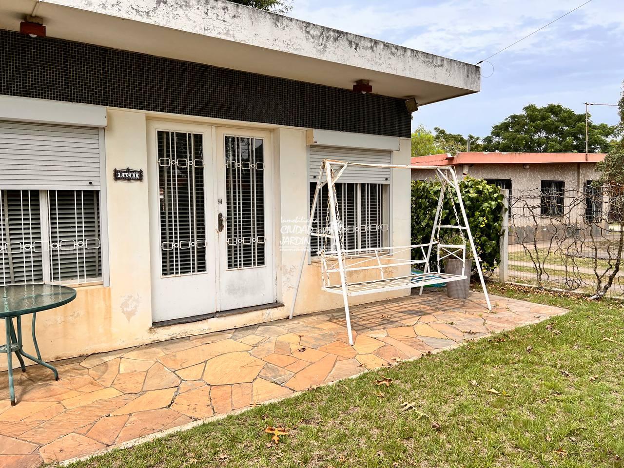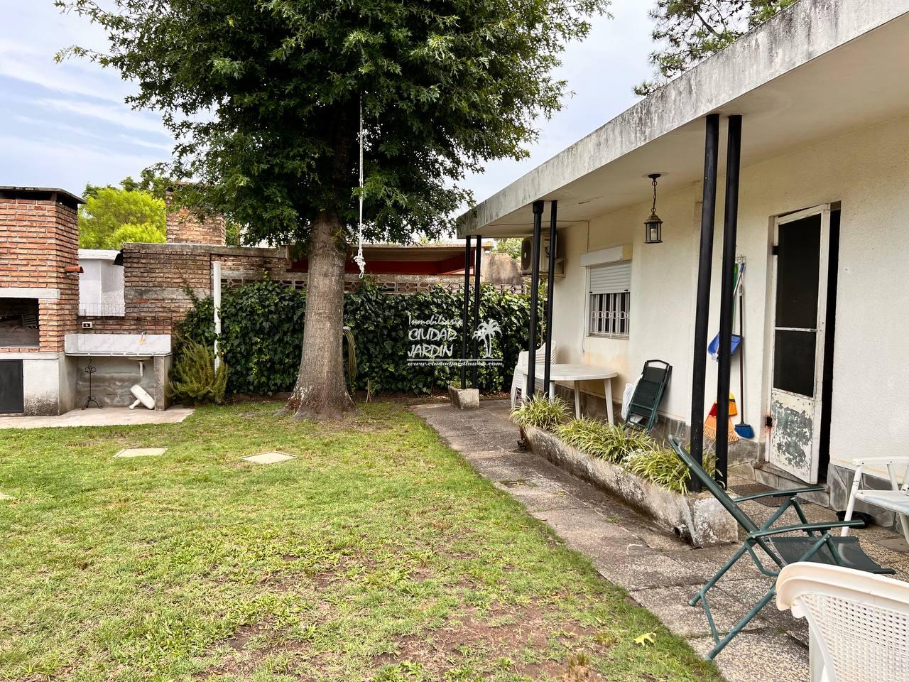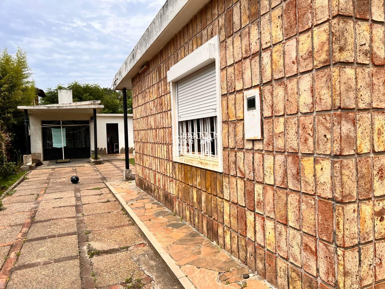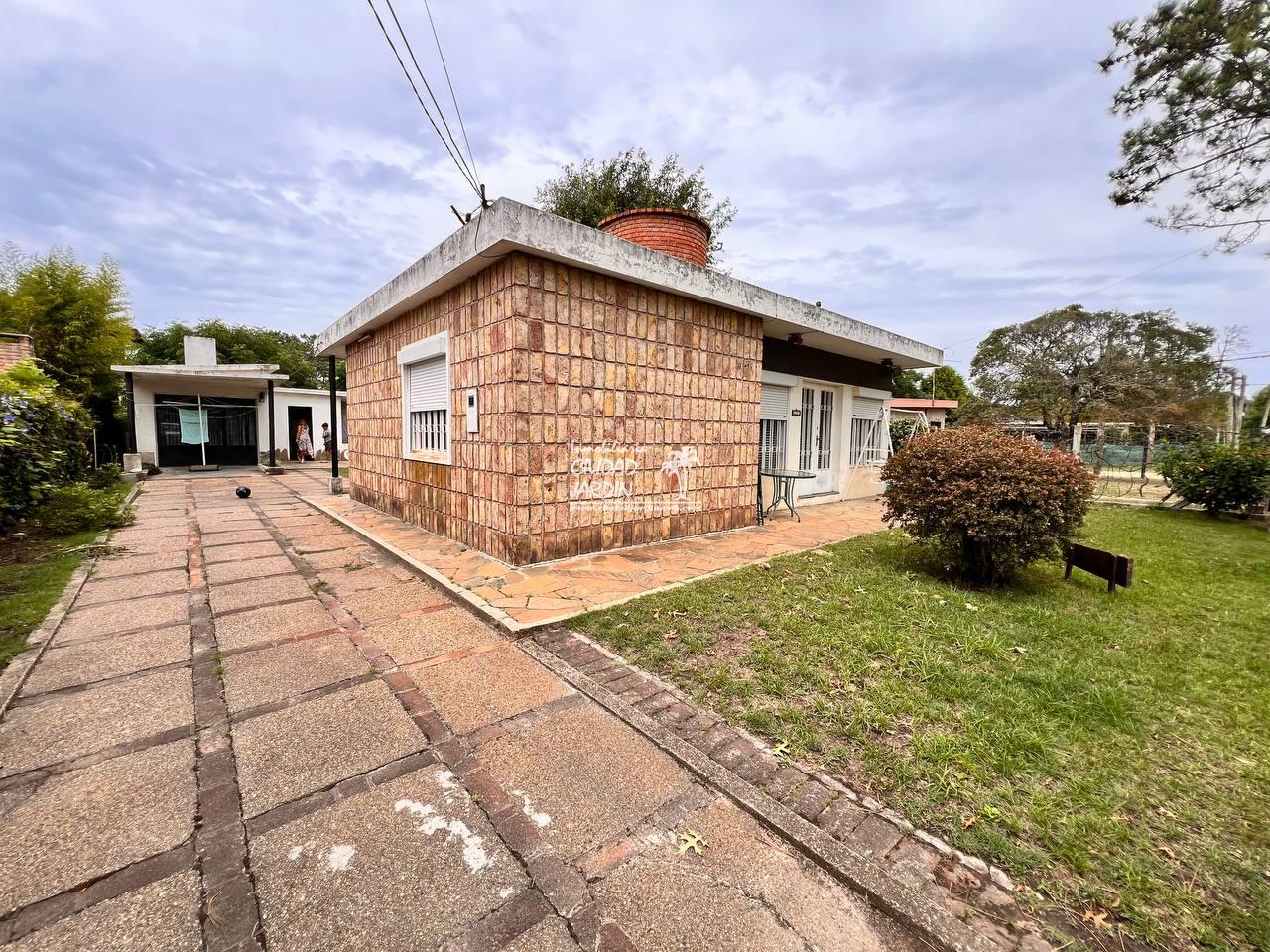 LA PROPIEDAD CUENTA CON JARDINES EN SU ENTORNO, EDIFICACIÓN AL FONDO CON GARAJE, 2 DORMITORIOS CON PLACARES Y UN BAÑO COMPLETO.