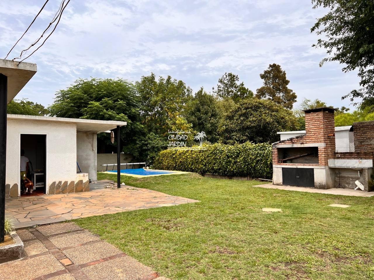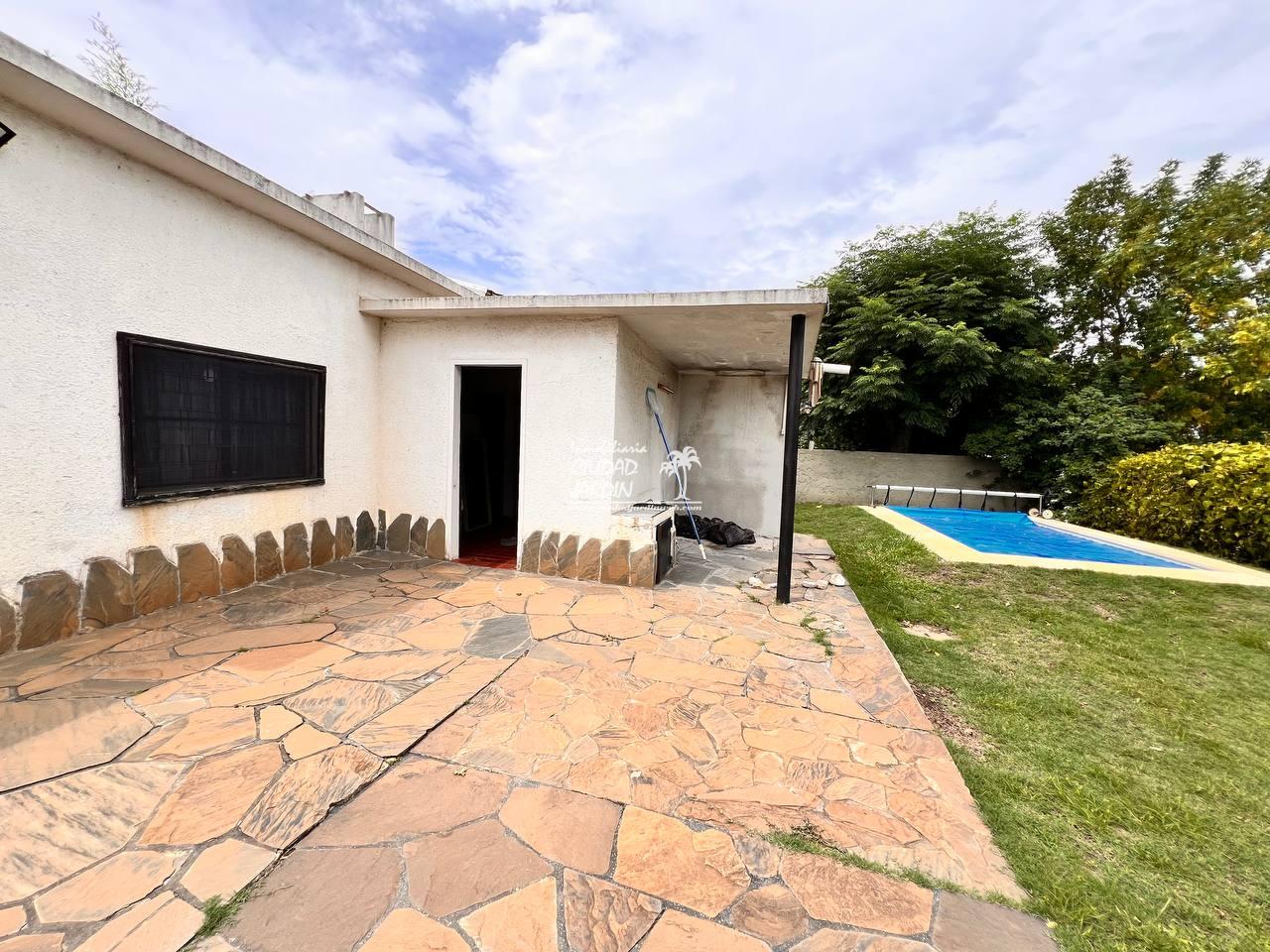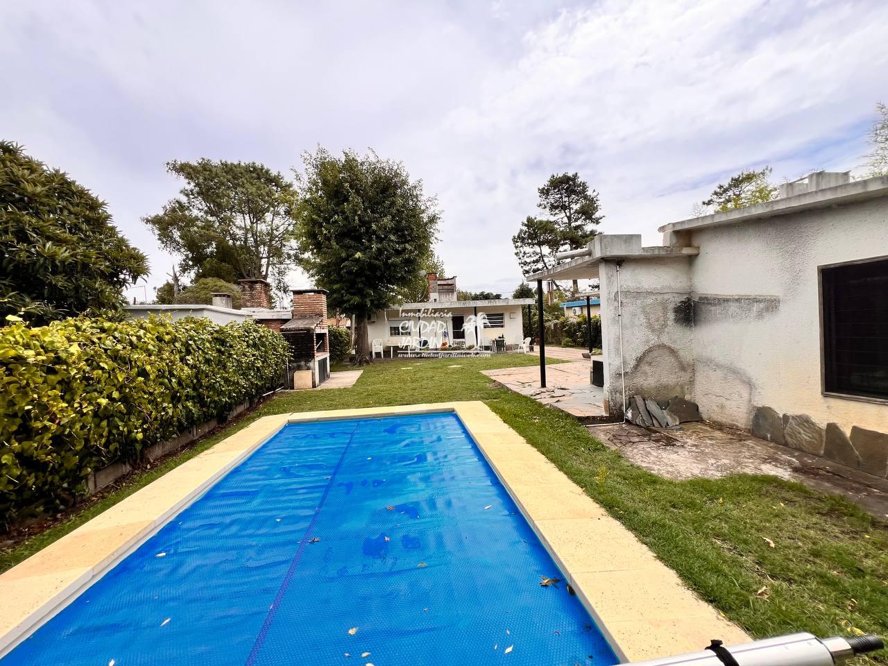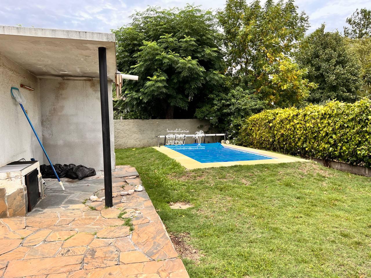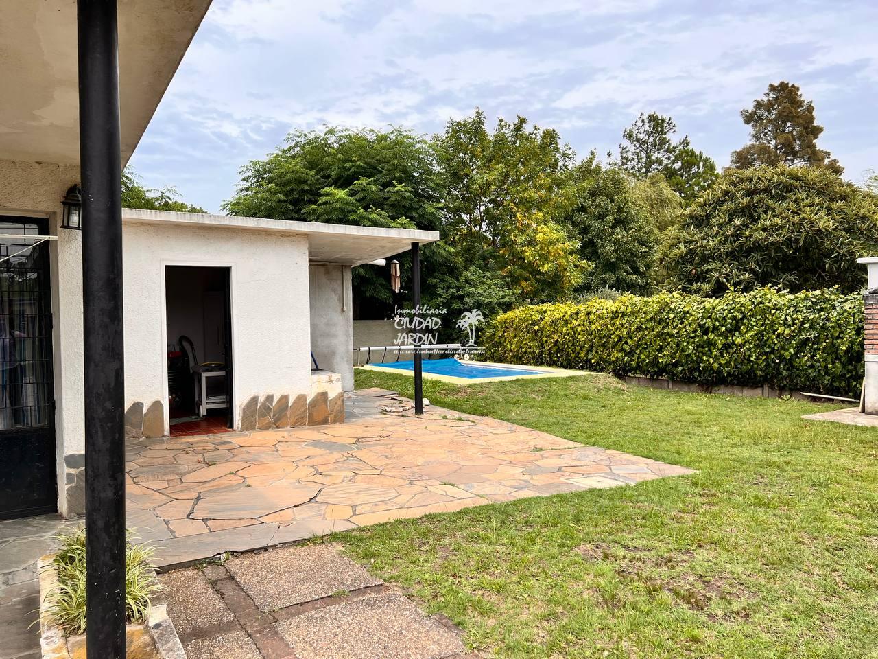 LA PROPIEDAD CUENTA CON JARDINES EN SU ENTORNO, EDIFICACIÓN AL FONDO CON GARAJE, 2 DORMITORIOS CON PLACARES Y UN BAÑO COMPLETO.